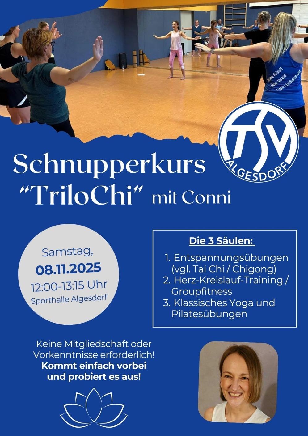 Seit gut 2 Jahren bietet Conni Kruckenberg als zertifizierte Übungsleiterin den Kurs TriloChi im TSV an. Erfunden und entwickelt von Kerstin Hecking, ist TriloChi ein zeitgemäßer Ansatz der ganzheitlichen Körper- und Energiearbeit. Gesundheitsförderung und Stressbewältigung werden durch das 3-Säulen-Konzept erreicht.