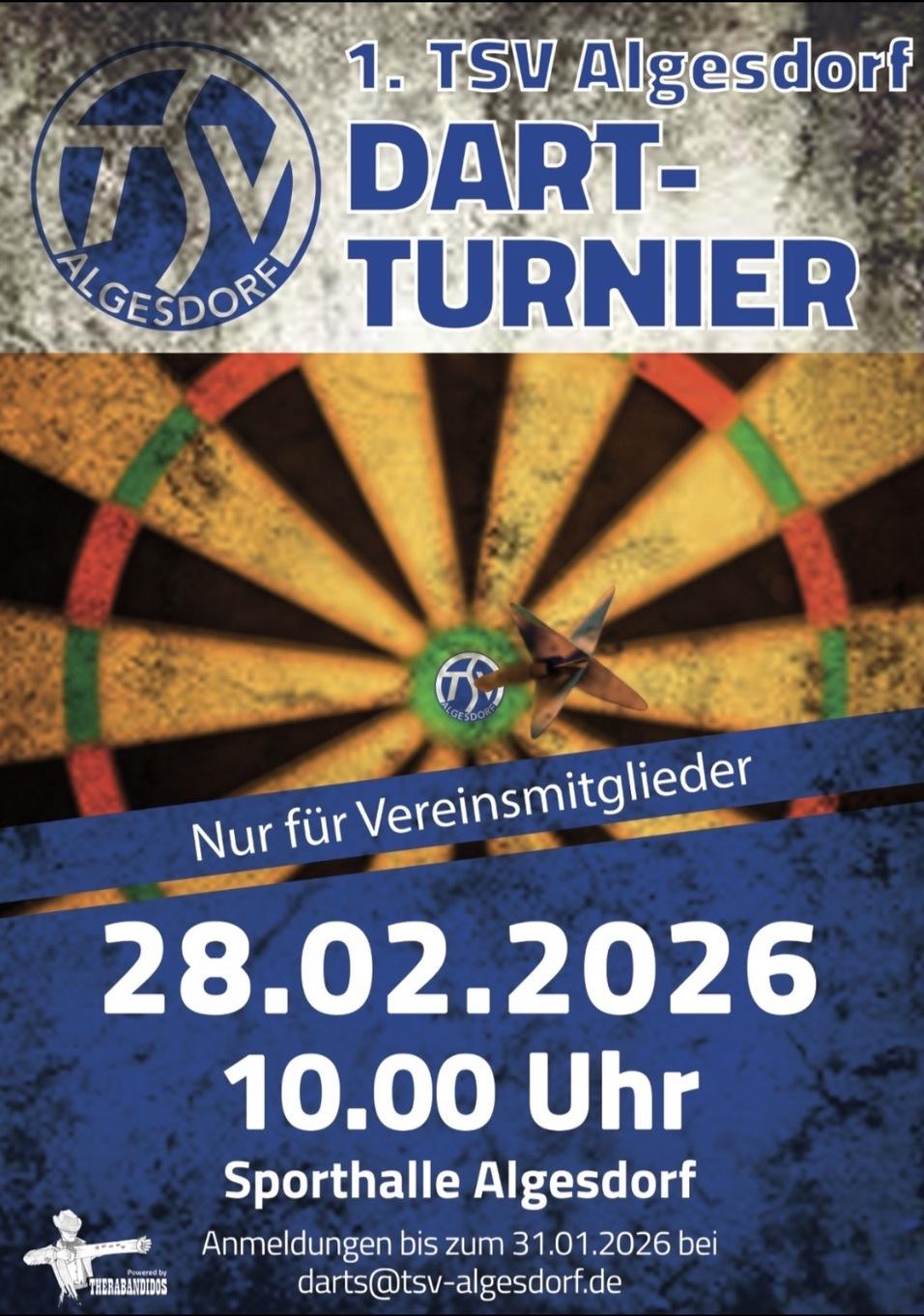 Anmeldungen können bis zum 31.01.2026 gerne per Mail an darts@tsv-algesdorf.de erfolgen.