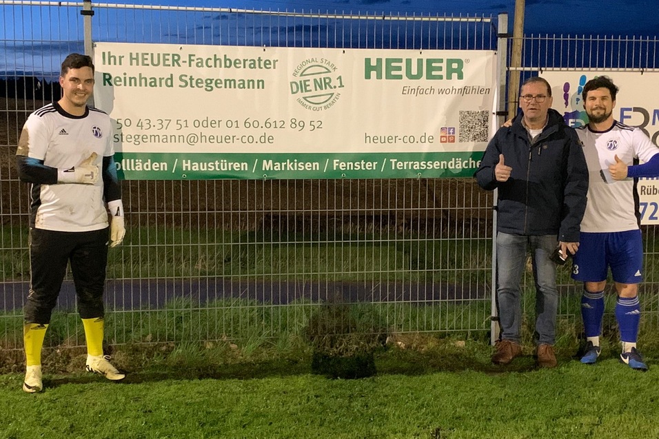 Unsere Fußballer freuen sich über einen neuen Werbepartner: Reinhard Stegemann, Experte für Fenster, Rolläden und Türen von Heuer, hatte sich genau den richtigen Tag ausgesucht und seinen Werbebanner beim Heimpielsieg unserer Ersten gegen Pattensen II am 28.03. aufgehängt.