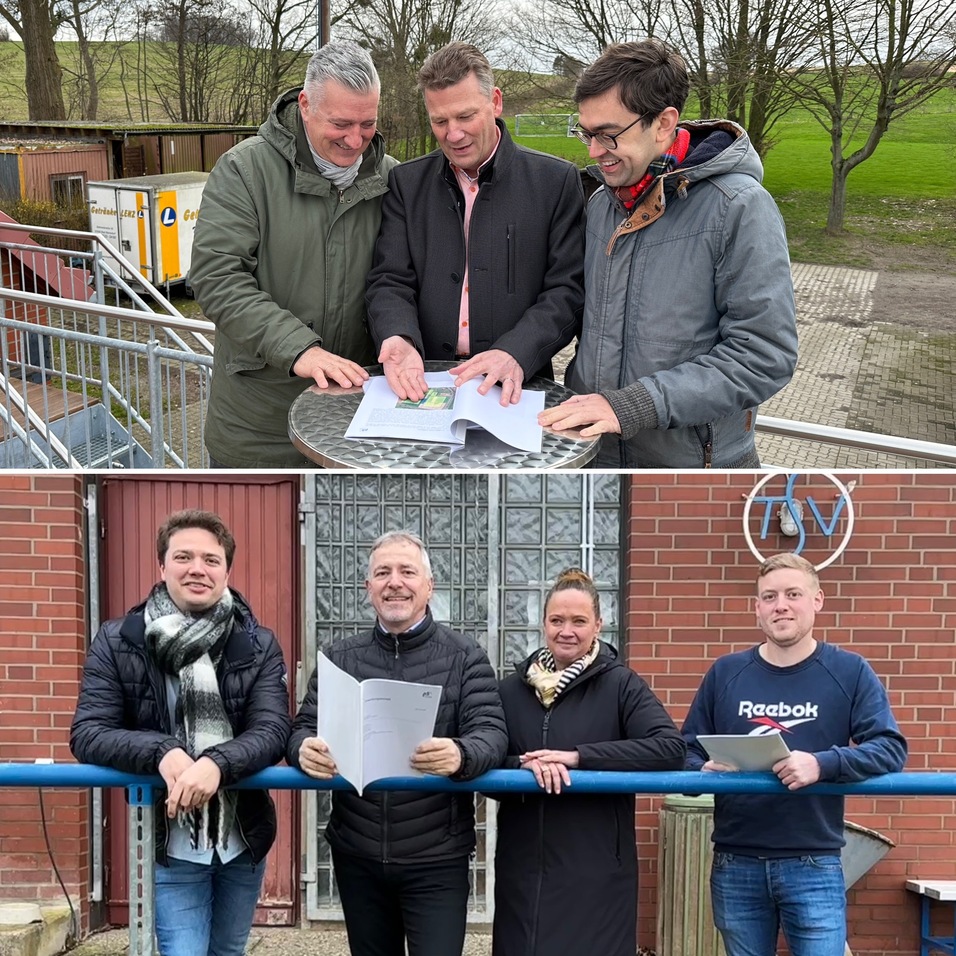Beide Alternativen sind mit enormen Kosten verbunden, die selbstverständlich nicht von der Stadt Rodenberg als Eigentümer allein getragen werden können. Daher haben sich Vorstand und Fußballsparte des TSV in den letzten Tagen mit Jan-Philipp Beck (Landtagsabgeordneter), Colette Thiemann (Landtagsabgeordnete), Hagen Rank (Vorsitzender Kreissportbund) und Marja-Liisa Völlers (Bundestagsabgeordnete) ausgetauscht, um potentielle Fördermöglichkeiten von verschiedenen Stellen identifizieren zu können. Alle zeigten großes Verständnis für die unzureichende Situation des TSV, gaben wertvolle Informationen zu Fördermöglichkeiten an uns weiter und sagten ihre Hilfestellung im weiteren Prozess zu.