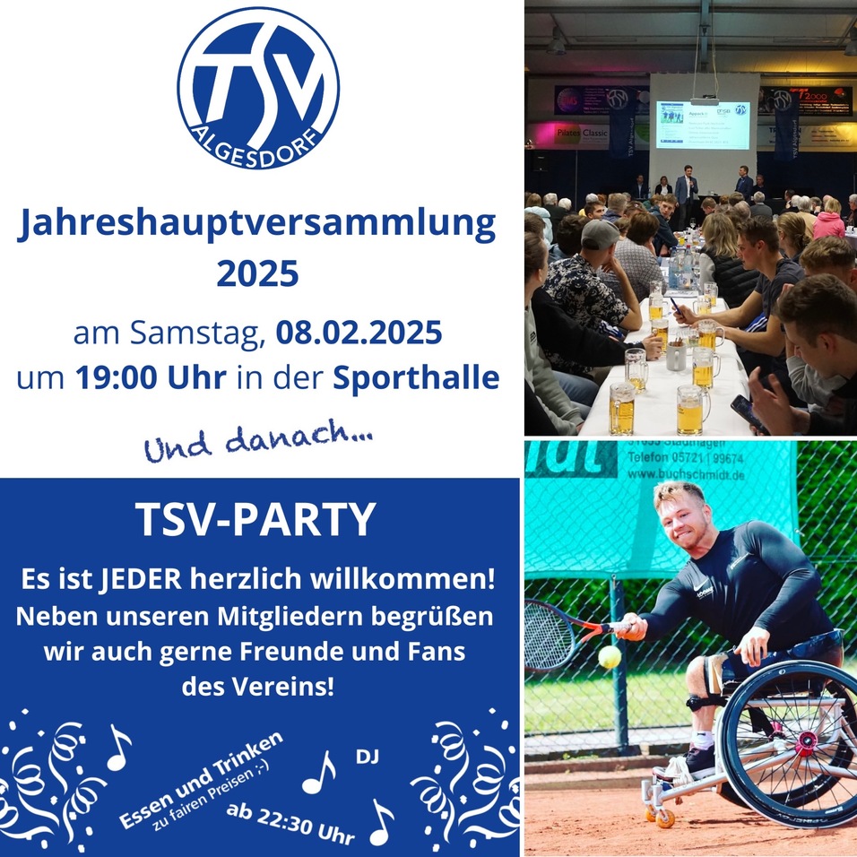 JHV am 08.02. mit TSV-Party und Christoph Wilke als Gast
