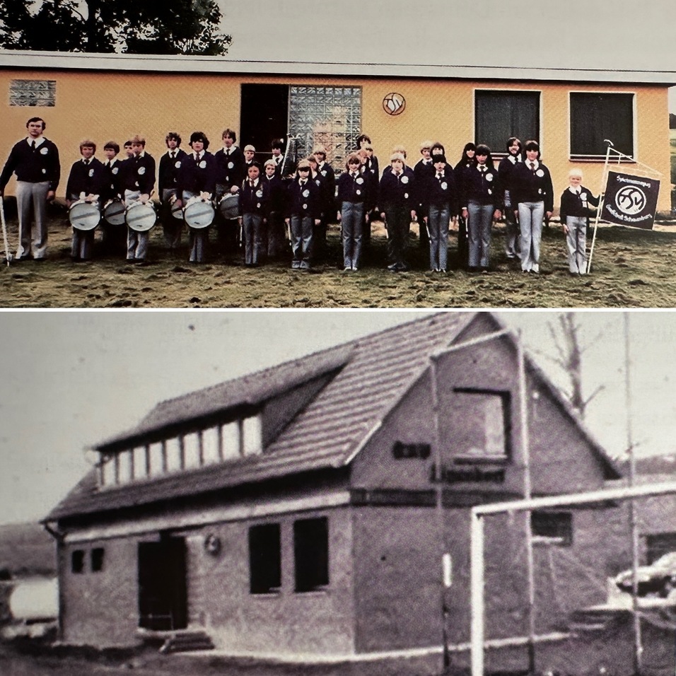 1984 wird es unter starker Beteiligug der Mitglieder aufgestockt und im Dachgeschoss ausgebaut, sodass es nun über einen Versammlungsraum, eine Küche und eine Toilette verfügt.